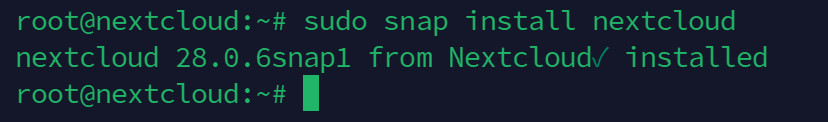 Odată conectați prin SSH la server, vom instala NextCloud direct din snap store cu următoarea comandă